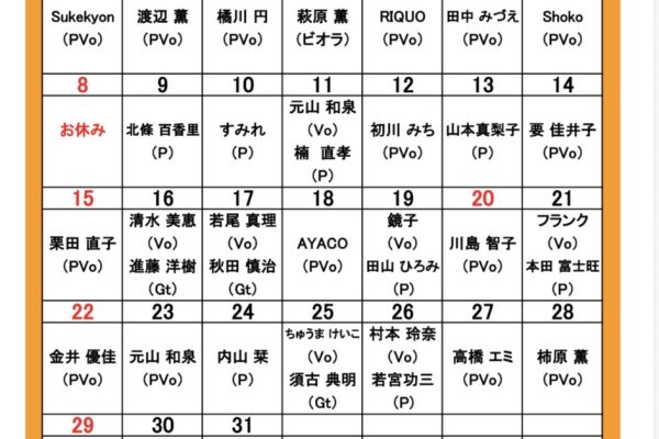 3/28は柿原 薫さんのピアノ弾き語りです。